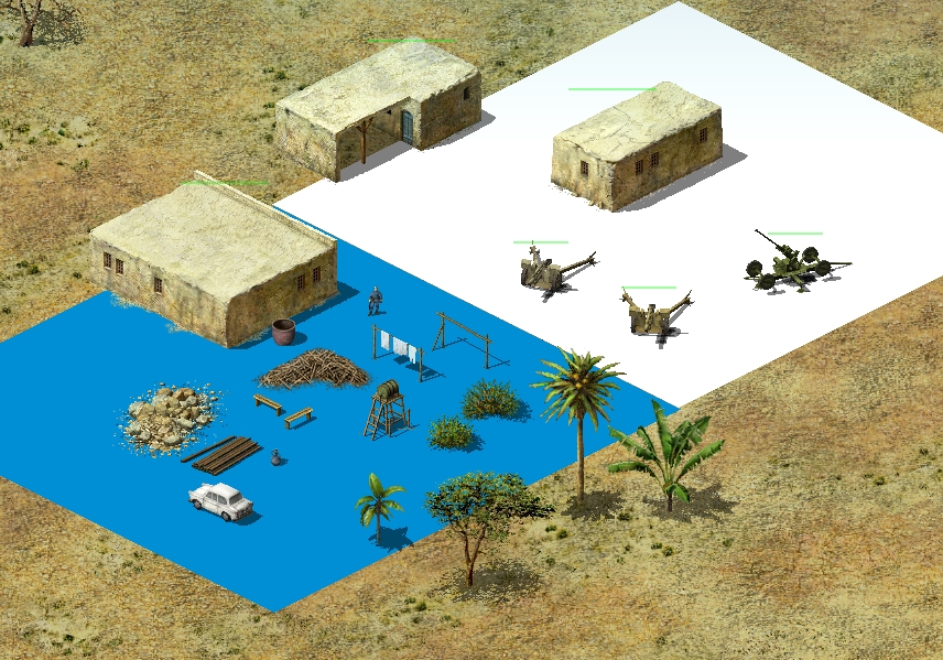 Именно по юнитам - в работе обмоток в синих тряпках (синий цвет у них почитается как военный). Как у тебя (на скринах в энциклопедии) добавлены 105 мм орудия для израиля и арабов, и китайский клон 37 мм зенитного автомата. По новым объектам - на скрине. Немного увеличен разброс легкого стрелкового оружия, для чуть большей выживаемости пехоты.